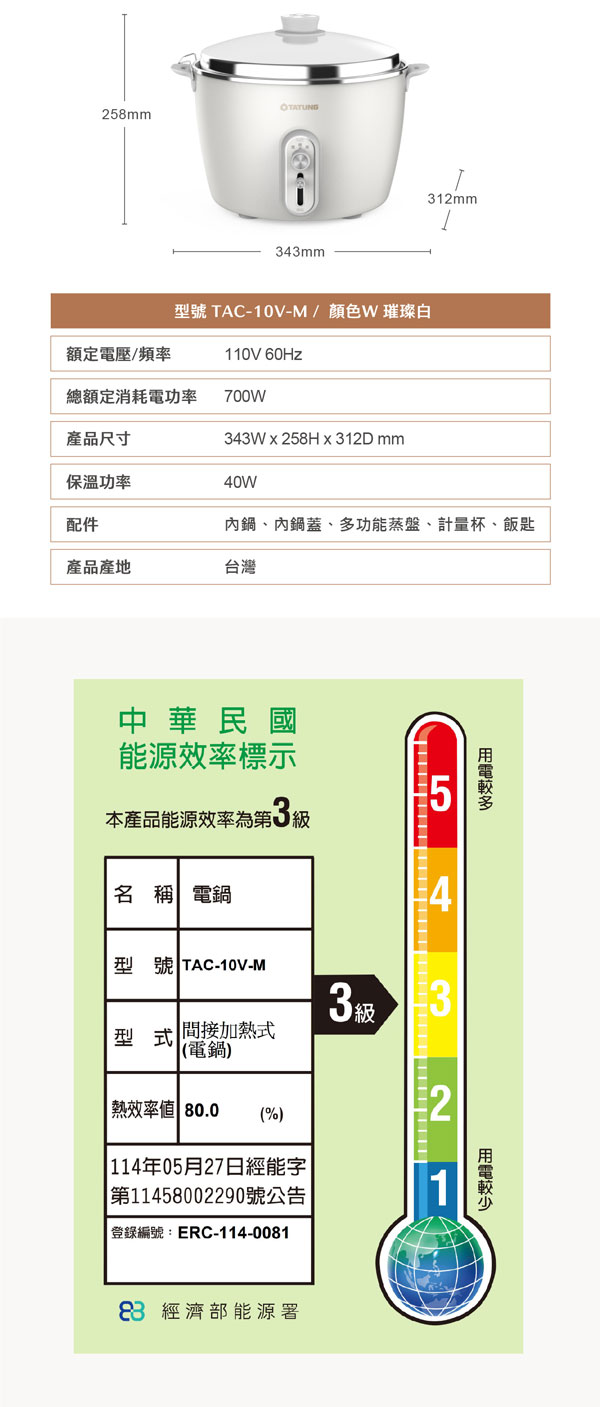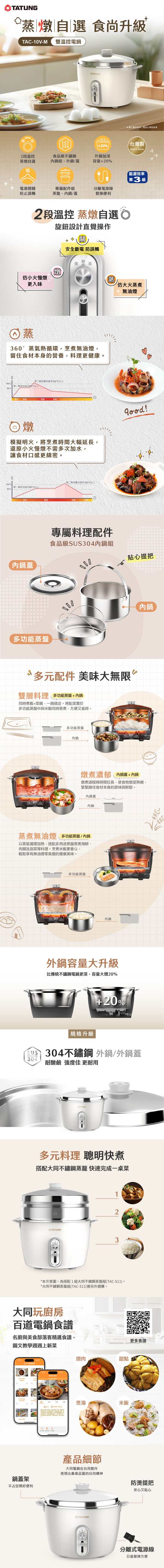 TATUNG大同 雙溫控電鍋 TAC-10V-M W璀璨白(10人份)