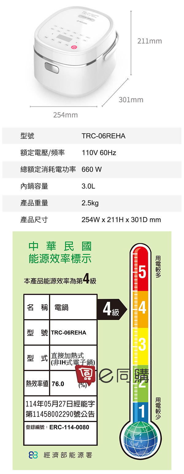 TATUNG大同 6人份 微電腦電子鍋 TRC-06REHA