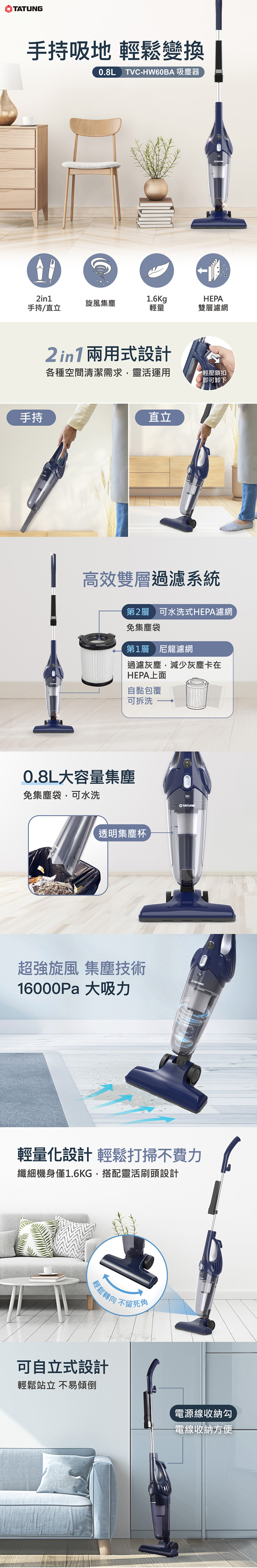 【TATUNG大同】手持直立式吸塵器 (TVC-HW60BA)