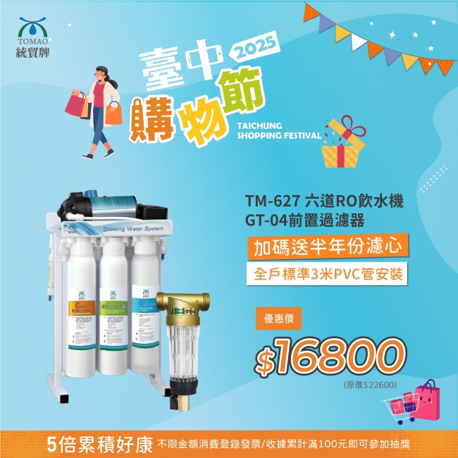 【台中購物節】TM-627 六道RO飲水機+GT-04前置過濾器(贈半年分濾心+PVC管)