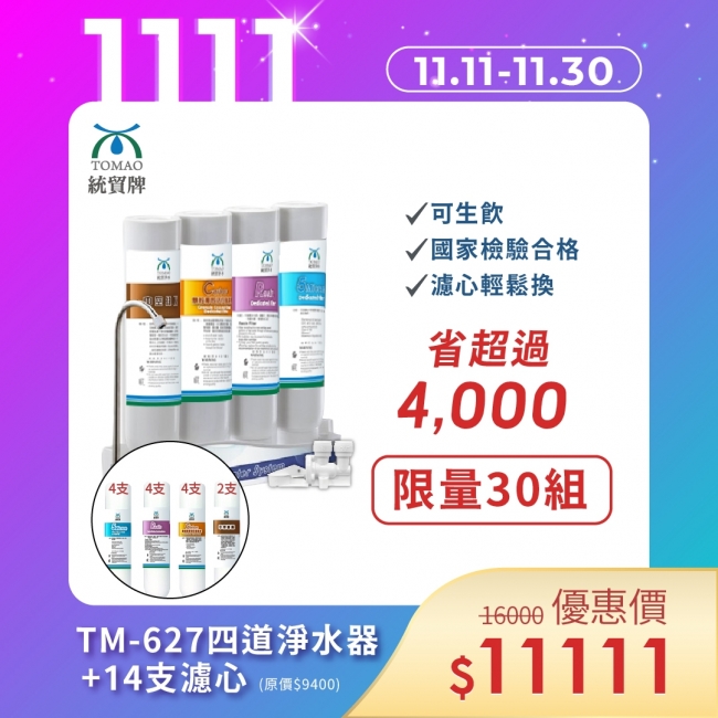 TM-627 廚下四道淨水器|可生飲✔ 專人到府安裝(限台中市區)✔ 通過國家檢驗合格✔ 濾心輕鬆更換不求人✔ 適用一般家庭廚下空間濾心內容: