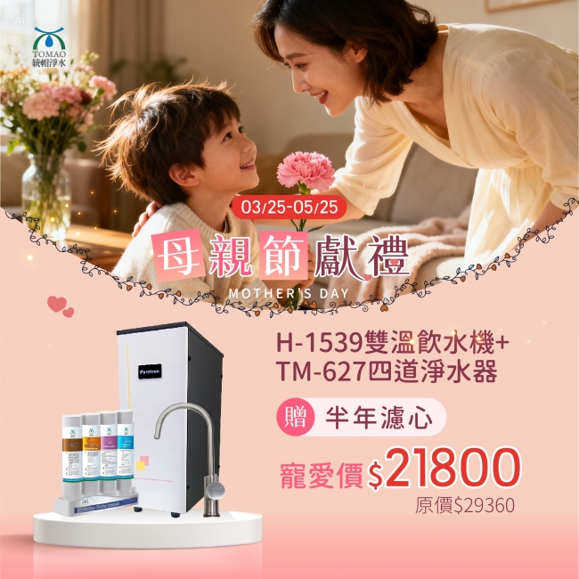 【母親節獻禮】H-1539 機械式櫥下飲水機+TM-627 廚下型四道淨水器(贈半年份濾心)